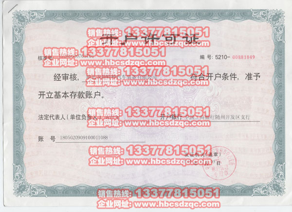 湖北龍晨特種汽車裝備有限公司開戶許可證號及開戶許可證掃描圖:J5286000765701