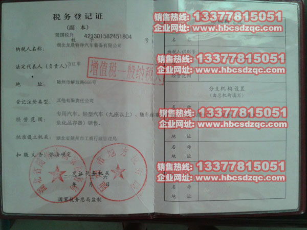 湖北龍晨特種汽車裝備有限公司稅務(wù)凳記證號及掃描圖:421301582451804