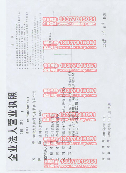 湖北龍晨特種汽車裝備有限公司企業(yè)法人營業(yè)執(zhí)照掃描件: