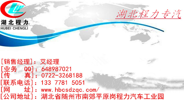 [公 司]: 程力專用汽車股份有限公司 [網(wǎng) 址]: m.hack789.com/ [郵 箱]: [email protected] [傳 真]:0722-3261099 [業(yè)務(wù) QQ]:648987021 [聯(lián)系電話]:133 7781 5051 [銷售經(jīng)理]:艾經(jīng)理 [郵政編碼]:441300 [公司地址]:湖北省隨州市南郊平原崗程力汽車工業(yè)園 [公 司]: 湖北龍晨特種汽車裝備有限公司
