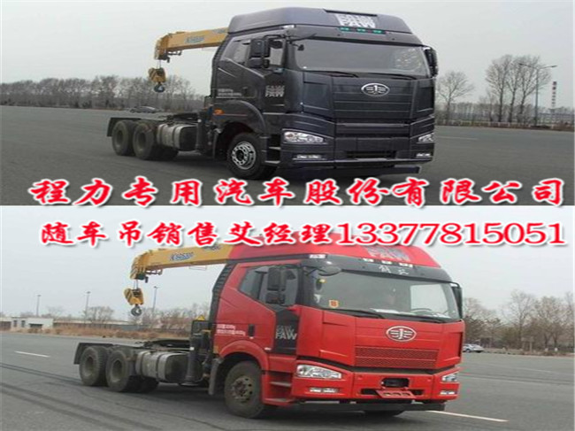 解放J6牽引車帶吊半掛隨車吊又叫拖頭隨車吊:按用戶要求配14噸16噸18噸20噸25噸30噸35噸40噸不同品牌吊機,以前我們在牽引車(半掛)車頭上裝折臂吊機,現(xiàn)在又下來了一款直臂車型,供用戶選擇。在這里說下。