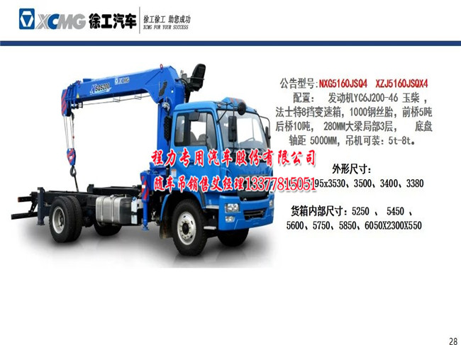 徐工牌NXG5160JSQ4型隨車起重運(yùn)輸車,YC6J200-46 5600×2300×550 9000×2495×3530 自重 9300