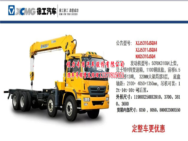 后置吊:徐工牌XZJ5311JSQX4型隨車起重運(yùn)輸車,7850×2300×600 SC9DK310Q4 11985×2495×3610 自重 14865