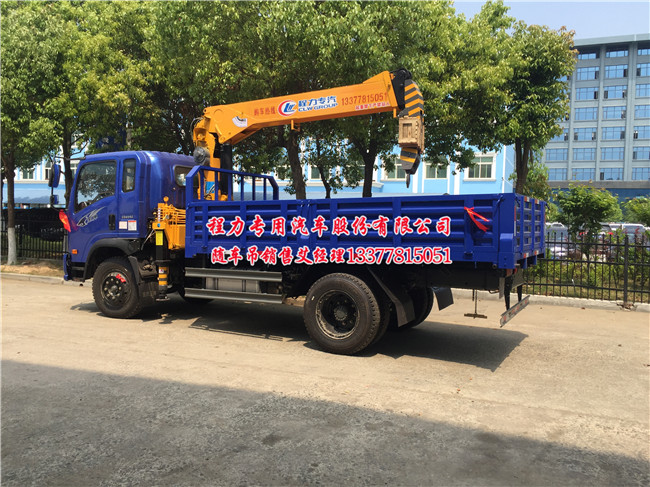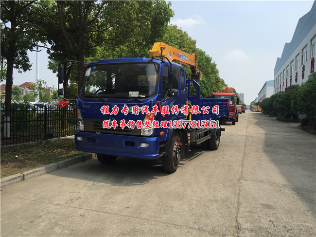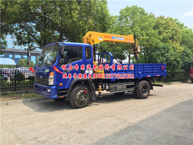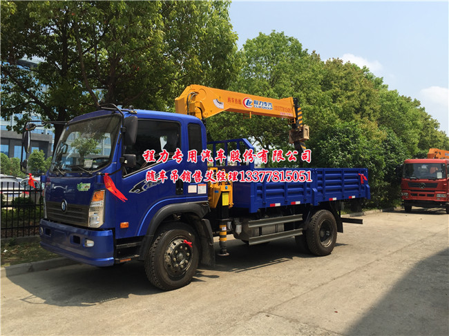 可以拉電桿(拉電線桿)的車型-選重汽王牌隨車吊-王牌牌CDW5121JSQHA2R4型隨車起重運輸車,軸距(mm)3900,總質量(Kg)11995,825-20輪胎,五檔帶副,250的大梁,4.3米的大廂,大廂里加裝6方灑水罐,也可以在大臂上加裝一個斗等等多功能隨車吊。重汽王牌隨車吊更換新的轉向助力器,加足轉向助力油,試車,故障即告排除。