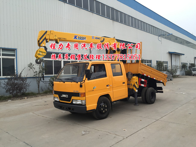 江鈴雙排隨車吊駕駛室2噸二節(jié)或2噸三節(jié)徐工吊機,江鈴藍牌國五隨車吊國五排放(隨車起重運輸車)徐工牌XZJ5041JSQL5型隨車起重運輸車,產(chǎn)品商標(biāo),江鈴藍牌隨車吊配徐工吊機:采用國內(nèi)知名液壓泵系統(tǒng),可實現(xiàn)快速升降,高效、節(jié)能。該機具有機動靈活、操作方便,功率大,作業(yè)高度高,范圍大。工作高效、安全、可靠等優(yōu)點。真空胎,4100江鈴五十鈴發(fā)動機,空調(diào),ABS,運程油門�?梢约友b多功能隨車吊自卸。