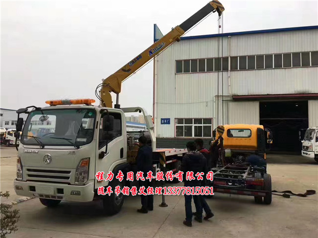 大運(yùn)隨車吊帶清障底盤配置:1995寬體駕駛室, YNF40E1國五排放云內(nèi)170馬力發(fā)動(dòng)機(jī)-國五隨車吊,825鋼絲胎,電動(dòng)門窗,斷氣剎,中控鎖,原裝空調(diào)。這款隨車吊一般配3.2噸或4噸5噸直折臂吊機(jī),也叫多功能隨車吊。
