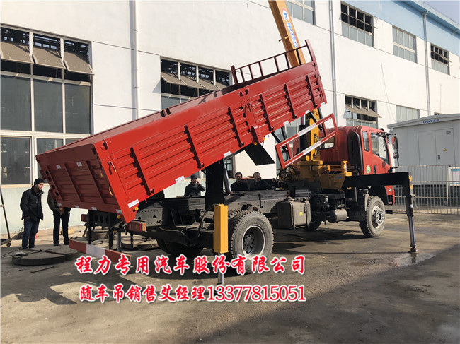 4.4軸距大運(yùn)自卸隨車吊配置:萬里揚(yáng)六檔帶副,9噸后橋,斷氣剎,帶ABS,尿素罐,遠(yuǎn)程油門,電動門窗中控鎖,電子遙控鑰匙,250*(7+5)局部三層大梁。140馬力玉柴與160與馬力兩款,4.8米自卸車與灑水車功能的水罐。吊機(jī)可配大7噸四節(jié)及以下折寺臂。