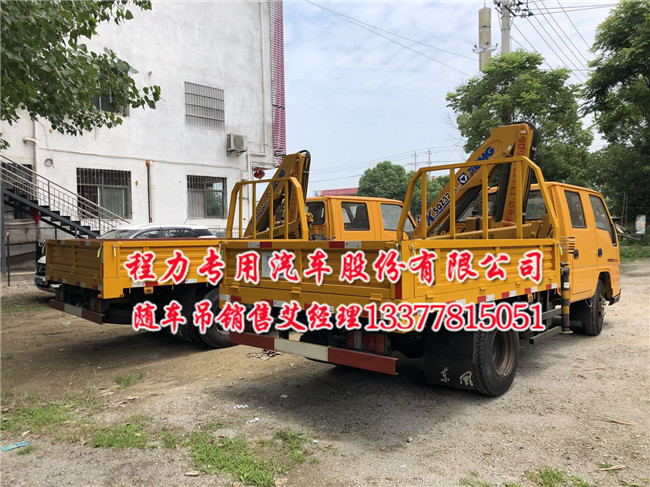 3.2噸江鈴雙排藍牌隨車吊可坐5人_江鈴單排隨車吊坐三人,藍牌隨車起重運輸車兩款車型配置是一樣的,就是駕駛室不一樣及車廂長度不一樣,其主要配置:,江鈴五十鈴85KW116馬力發(fā)動機,7.00鋼絲胎,油剎,五檔箱,前橋2噸,后橋3.5噸,帶原廠ABS,排氣制動_多功能隨車吊