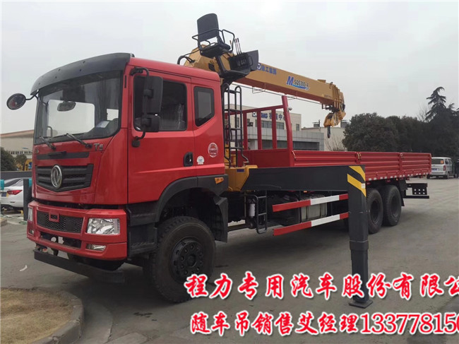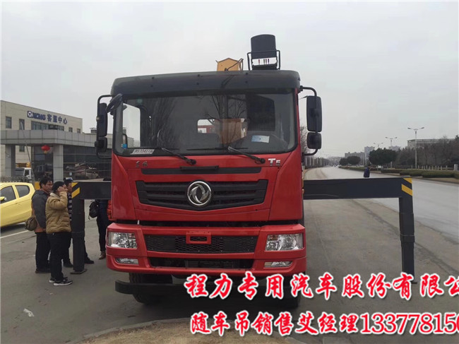 東風(fēng)T5駕駛室還有兩軸隨車吊配8噸10噸吊機最好,10.00R20鋼絲胎,帶動力轉(zhuǎn)向、排氣制動、斷氣剎,帶ABS。陜齒小八檔8JS85E變速箱,原廠取力器,300mm雙層大梁,局部加長外包三層,軸距5150mm, 5T/10T德納加強型車橋,