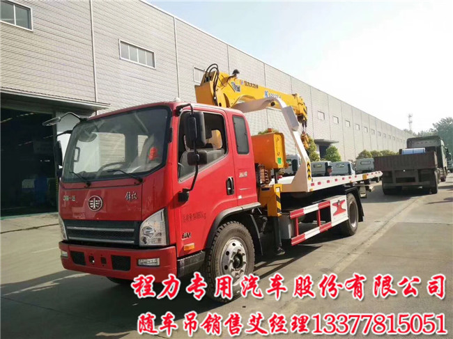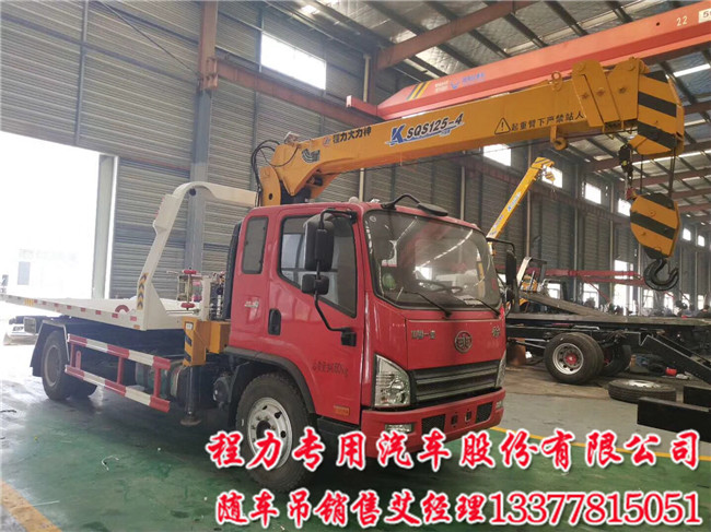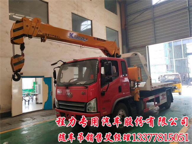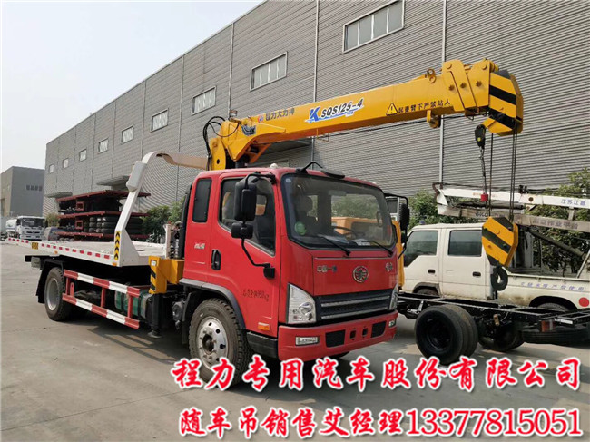 SCS5166TQZCA 解放平板一拖二清障車帶吊配置:解放虎V黃牌隨車吊帶清障吊機可以配5噸四噸3.2噸,/電動玻璃,在廠空調(diào),825鋼絲胎,大梁加厚外包,軸距(mm)4400.