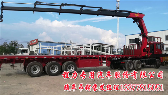 目前市場上陜汽牽引頭帶吊/解放J6牽引頭帶吊/華菱牽引頭帶吊三款,吊機(jī)配直臂和折臂都行,最大配38噸全折 隨車吊,發(fā)動(dòng)機(jī)機(jī)馬力也不同_陜汽牽引頭375馬力_解放J6牽引頭350馬力_華菱牽引頭420馬力供你選.今天主要講講陜汽牽引頭帶吊.配下面幾款掛:拉挖機(jī)掛/車廂掛/平板掛,不能配罐體掛.準(zhǔn)拖32300公斤.