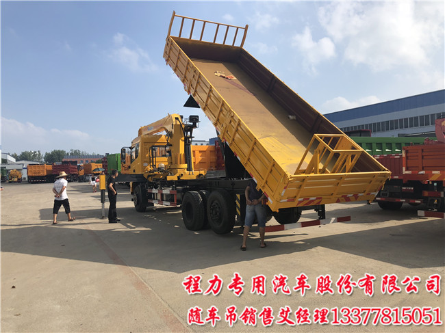 假三軸十通多功能隨車吊6.5米中置自卸臥頂