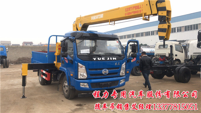 躍進牌隨車吊SH5042JSQ1VEDBNW型隨車起重運輸車可配7噸吊機及6.3噸5噸4噸3.2噸折直臂吊機,也是唯一一款濰柴發(fā)動機140馬力,車身:X500高頂單排;車架:23#雙層主副一體(820mm直大梁);軸距(mm:3300;發(fā)動機動力型號: 濰柴動力WP3.7發(fā)動機馬力: 140;變速器: 8T50C(長泰)多檔箱+超速檔;后橋:1092(速比:5.286);輪胎:8.25r-16;板簧:8/10+6;電動門窗帶ABS自調隙