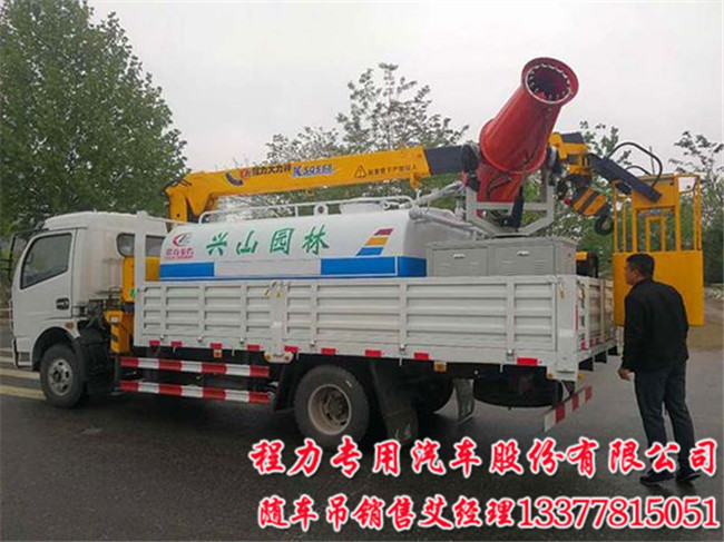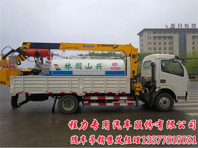 藍(lán)牌隨車吊帶水罐帶霧炮:在藍(lán)牌多功能隨車吊車廂里加裝一個(gè)四方(4噸)的灑水罐,水罐可吊上吊下,在水罐的一端加個(gè)霧炮,小水罐一般配30米左右行程.霧炮的作用:噴灑農(nóng)藥,公共場(chǎng)合殺毒、降溫、各種料堆裝卸時(shí)揚(yáng)塵治理;清潔凈化空氣的效果:噴射的水霧顆粒達(dá)到微米級(jí),進(jìn)行液霧降塵、分解淡化空氣中的顆粒濃度;同樣一車水,用霧炮可多噴50分鐘,提高了水資源利用率,