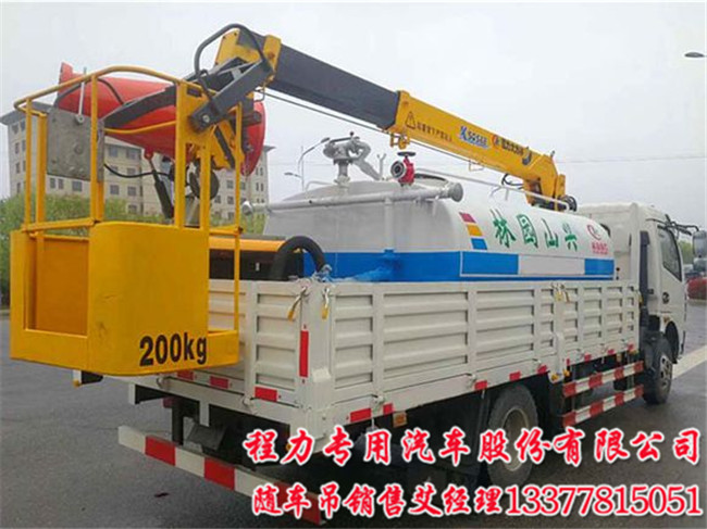 東風(fēng)藍(lán)牌多功能隨車吊帶灑水罐帶霧炮帶高空作業(yè)斗:現(xiàn)在的用戶大部分都要上藍(lán)牌,還要發(fā)動(dòng)機(jī)馬力大,輪胎大,加裝自卸,加裝灑水罐,還要加裝霧炮,還可在大臂頂端加一個(gè)工作斗,做到一車多用.所以,為了滿足用戶要求,廠家可以按用戶要求來(lái)生產(chǎn),滿足用戶需求,今天說(shuō)說(shuō)藍(lán)牌隨車吊帶水罐帶霧炮帶工作斗車型.