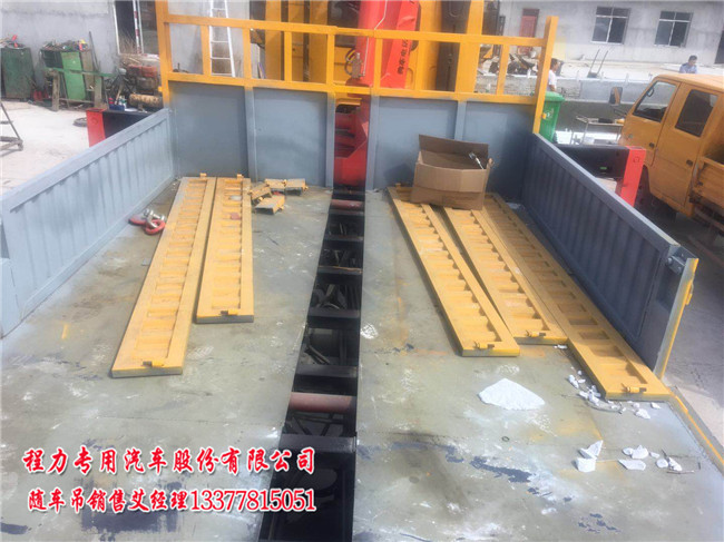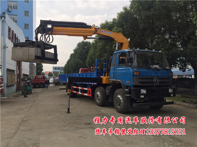 夾磚隨車吊_拉磚隨車吊與普通隨車吊不同:這里主要是指車廂要加固及車廂申縮.吊機(jī)必須用折臂,加360旋轉(zhuǎn)夾具.