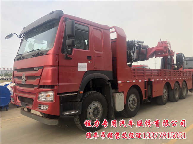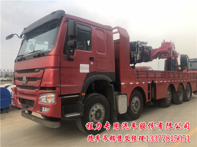 200噸江威隨車吊最大起重力矩(KN.M)4000  ;工作半徑15.8米,最大起重量100噸; 整車高度3500(mm);最起升高度為18.5米,回轉(zhuǎn)速度(轉(zhuǎn))大于等于2.5,額定工作壓力(MPa)30;額定流量(L/min)130;回轉(zhuǎn)角度(度)全回轉(zhuǎn);支腿夸距(mm)2500-8100;起重機質(zhì)量(kg)31600.一般配五軸免征重汽隨車吊,發(fā)動機選380馬力,總質(zhì)量50噸,法士特12檔變速箱。整備質(zhì)量48.8噸,整車長度12米,1200鋼絲胎.