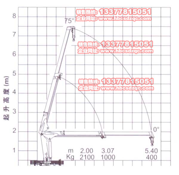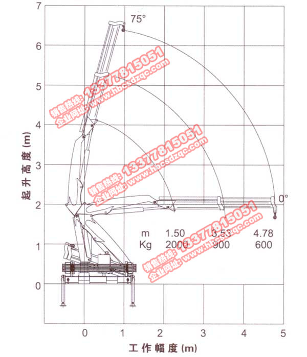 2噸二節(jié)直臂長5.5米,三節(jié)長7.5米,2米吊2噸,3米吊1噸,5.5米吊0.4噸;7.7米吊0.25噸;二噸二節(jié)折臂4.7米,在1.5米吊2噸,3.5米吊0.9噸,4.7米吊0.6噸.如果用戶配3噸或4噸吊機,也可以,就是在把車牌上好以后,再換大噸位吊機,達到你的要求.