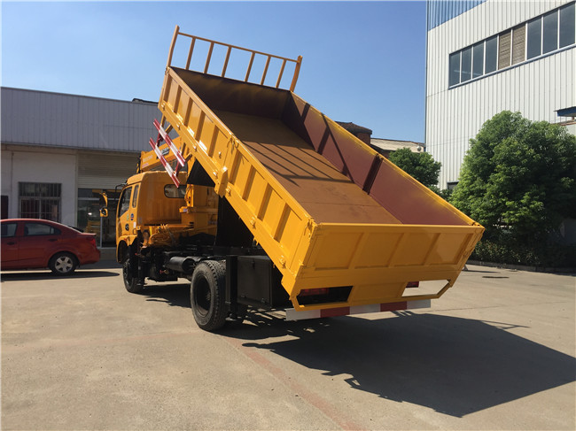 多功能隨車吊華神底盤加裝自卸車功能的車廂,具有灑水車功能的灑水罐,可吊上吊下,吊藍配在吊機大臂頂端,主要功能按裝招牌(廣告牌)修路燈.
