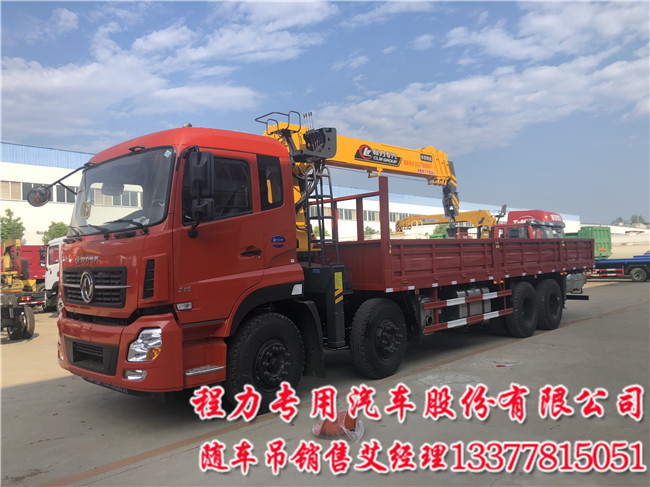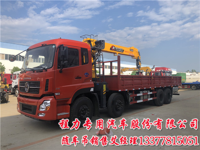 東風(fēng)天龍前四后八隨車(chē)吊直臂式吊機(jī):,ABS廠(chǎng)家:東科克諾爾商用車(chē)制動(dòng)系統(tǒng)(十堰)有限公司.安裝具有衛(wèi)星定位功能的行駛記錄儀.型號(hào)/吊機(jī)重量(kg)/最大起升載荷(kg)/整備質(zhì)量(kg)/載質(zhì)量(kg)/貨廂長(zhǎng)度(mm)/外高(mm)分別為:1、(SQS350,QYS-14,SPS35000,SQ14)/側(cè)防護(hù):材質(zhì)Q235,螺栓連接.后下防護(hù):材質(zhì)Q235,螺栓連接,斷面尺寸120×60mm,離地高度430mm.選裝側(cè)窗裝飾板.選裝箱板結(jié)構(gòu).