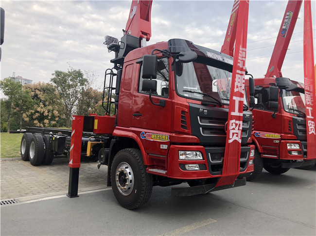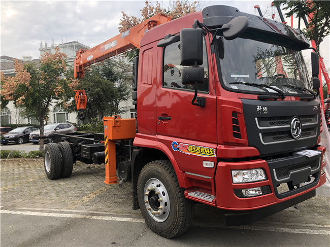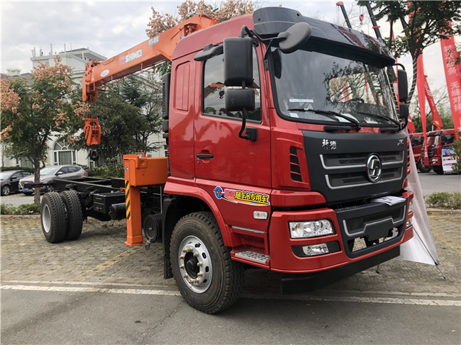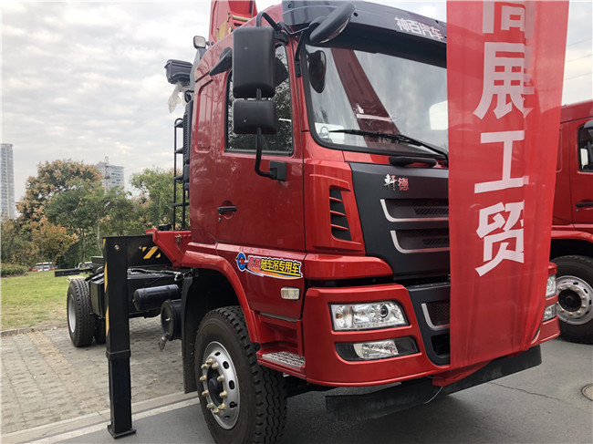 陜汽軒德隨車吊公告配8噸及10噸不同品牌吊機,6.3噸吊機也可配,整車不超重,全國好上戶.自卸車廂,灑水罐可吊上吊下及大臂頂端配吊藍,這些按用戶加裝多功能隨車吊.中控鎖,10英寸多功能顯示屏。法士特小八檔變速箱,前5T后10T,300大梁通三層,