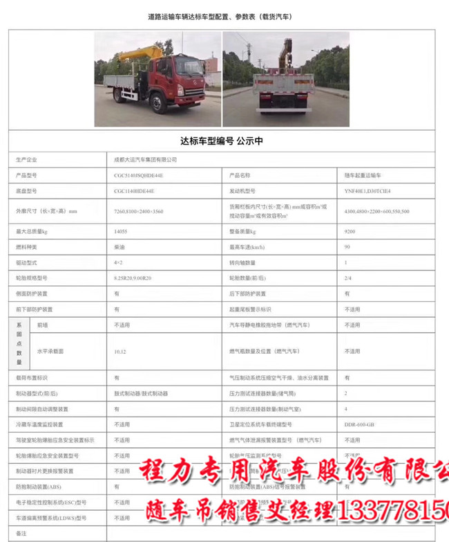 大運(yùn)國(guó)六隨車吊公告參數(shù):