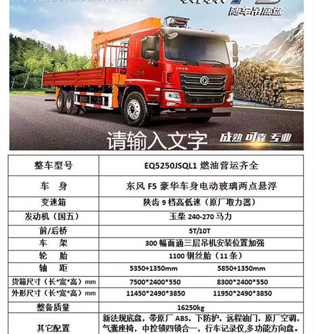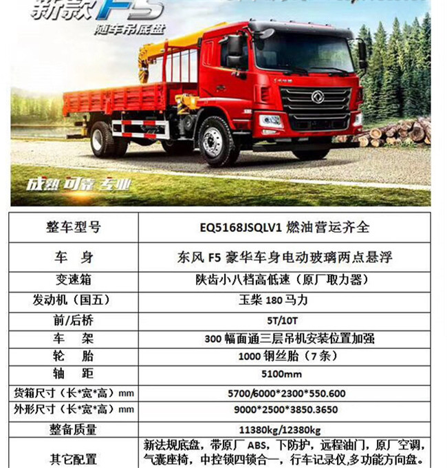 東風(fēng)華神F5隨車起重運輸車配置請看圖片上有,車廂有什么要求請跟專業(yè)銷售經(jīng)理說,比如加自卸,加固車廂,及你配吊機(jī)主要用途.給你配一款最合適的F5隨車吊價格報出來.