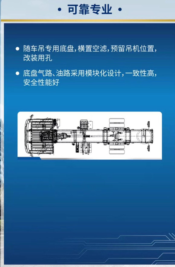 東風(fēng)華神F5隨車吊可靠專業(yè):橫置空濾,預(yù)留吊機(jī)位置及改裝用孔.及底盤的汽路,油路采用模塊化設(shè)計,一致性高,安全性能好.