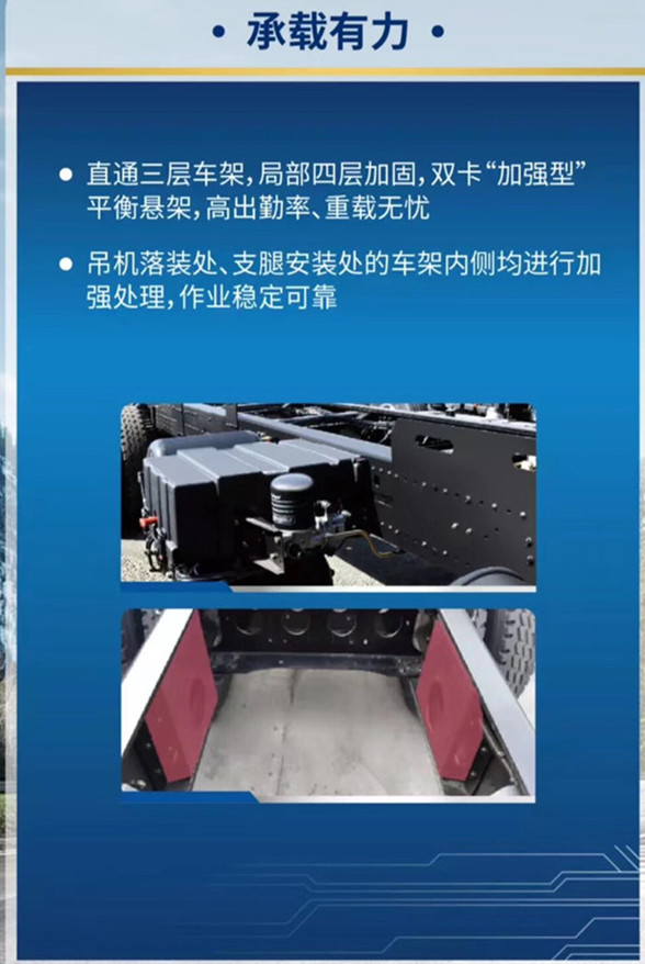 東風(fēng)華神F5隨車吊承載有力:直通三層大梁,局部四層加固,雙卡加強(qiáng)型平衡懸架,高出勤率,重載無憂.吊機(jī)落裝處,支腿安裝處的車架內(nèi)側(cè)均進(jìn)行強(qiáng)處理,作業(yè)穩(wěn)定可靠.