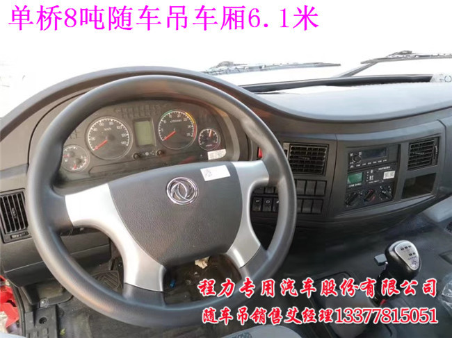 單橋8噸隨車吊6.1米車廂的配置:電動玻璃,氣囊座椅,T702單排駕駛,玉柴200馬力,陜齒8檔變速箱,300車架,5噸前橋,10噸后橋,1000R20鋼絲胎,中控鎖.帶隨車吊專用取力器及遠(yuǎn)程油門。