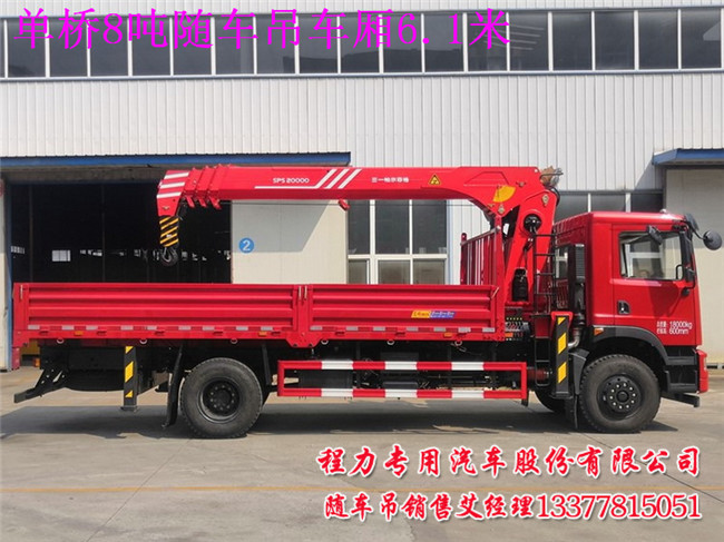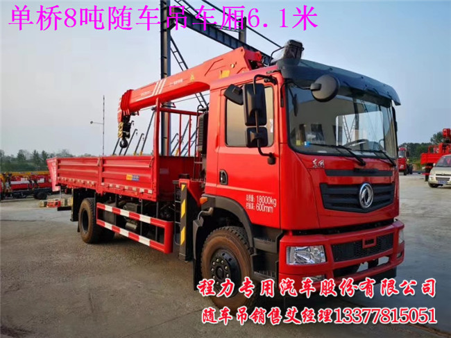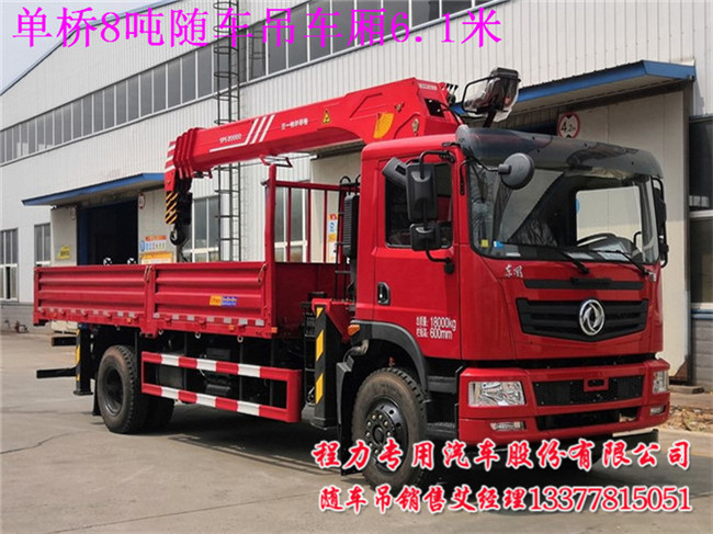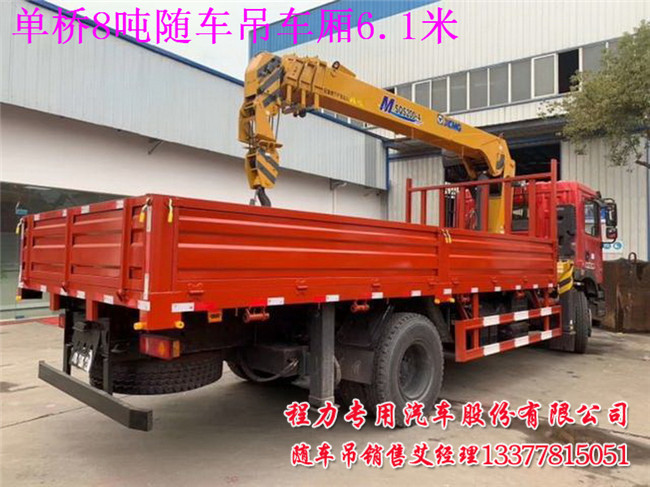 單橋8噸隨車吊車廂6.1米的用戶看到這里后,還有哪里不清楚的,當(dāng)然配8噸以下吊機做6.1米足足有余,因裝吊機的位置少些.如配10噸或12噸吊機,車廂做不到6.1米,因裝吊空間要大些.吊機品牌你來訂,有徐工,三一,程力專汽.福曼吊機.宏昌天馬等等,主要是用戶個人喜愛吊機品牌就配哪款吊機.