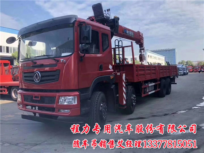 常用三款東風T5隨車吊配置就是東風華神隨車吊,配吊從16噸14噸12噸8噸6.3噸按公告公市,如果你想小底盤配大吊機,整車會超重,考慮到上戶問題,先確定好再購車,也可以隨州包上戶.如果你配大底盤配小吊機,主要以拉貨為主,并且確定吊固定的活兒,如:一般吊2-3噸左右的貨,就配6.3噸的吊機就行.
