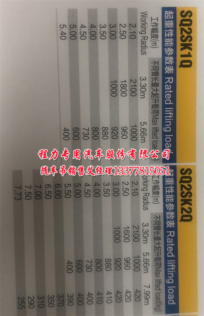 單排江鈴藍(lán)牌隨車吊車廂長(zhǎng)為3.6米,雙排車廂長(zhǎng)為2.6米,二噸吊機(jī)參數(shù):二噸二節(jié)臂長(zhǎng)為5.4米,高度為7.4米;三節(jié)大臂半徑為7.7米,高度為9.7米,大臂不同長(zhǎng)度所吊貨物重量不同:2.1米吊2噸,3米吊1噸,3.5米吊0.88噸,4.5米吊0.73噸,5.5米吊0.4噸,6.5米吊0.35噸,7米吊0.31噸,7.7米吊0.255噸;二噸二節(jié)折臂長(zhǎng)5米,高度為7.5米.