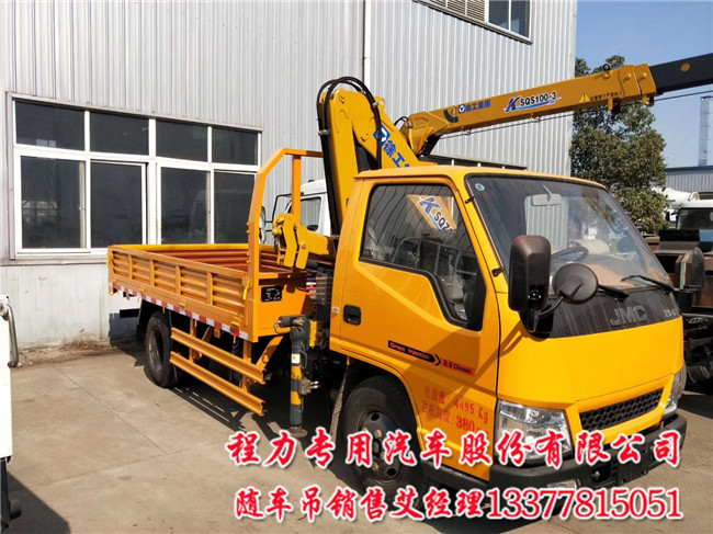 XZJ雙排江鈴隨車吊(藍(lán)牌)與單排江鈴隨車吊(藍(lán)牌)區(qū)分,按公告配2噸二節(jié)及二噸三節(jié)直折臂徐工吊機(jī),因?yàn)槭切旃さ恼嚭细褡C.只有配二噸的吊機(jī)整車自重才不超重,好上戶,現(xiàn)在隨車起重運(yùn)輸車上戶時(shí)自重查的嚴(yán)(超100公斤范圍內(nèi)).下面從江鈴隨車吊價(jià)格,車廂,及吊臂長(zhǎng)度和在幾米之內(nèi)吊多少貨的吊機(jī)參數(shù)一一為用戶講解.