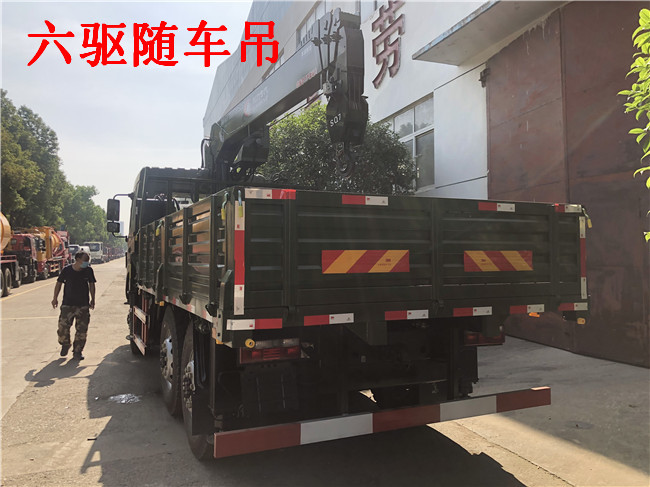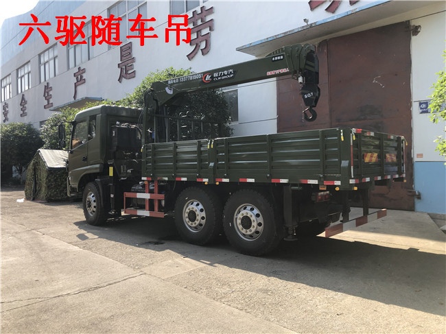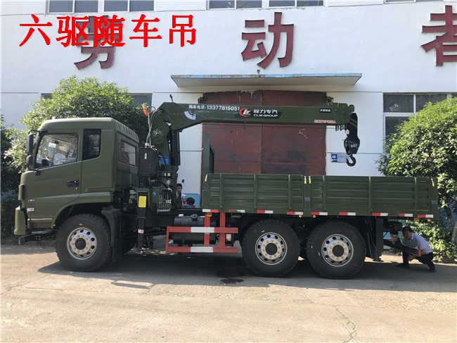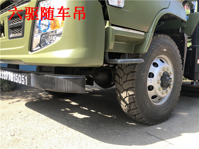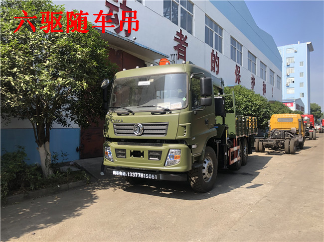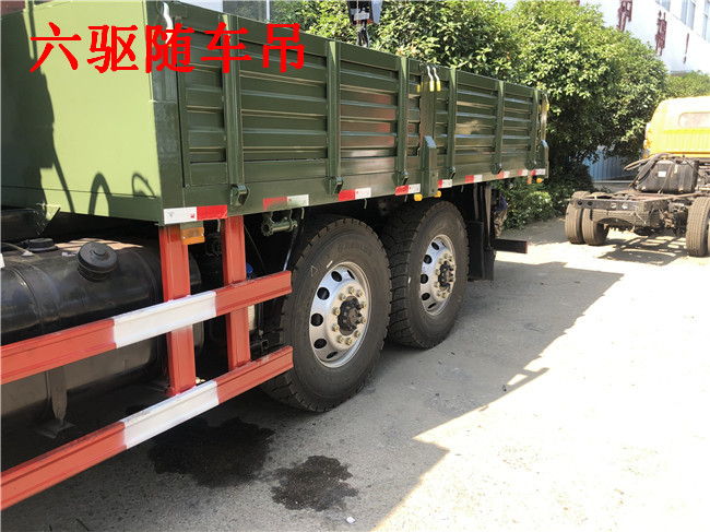 6X6東風(fēng)原廠六驅(qū)隨車吊配吊噸位:按公司配5噸6.3噸7噸整車自重不超重,因整車自重輕,是單層大梁,所以配不了8噸吊機(jī)。