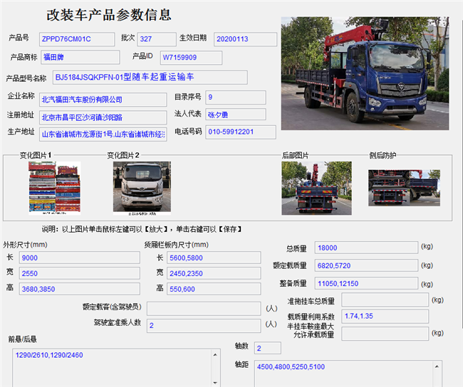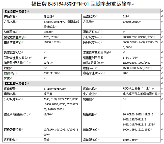 產(chǎn)品名稱 BJ5184JSQKPFN-01型隨車起重運輸車