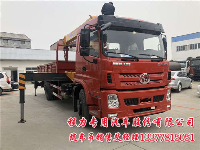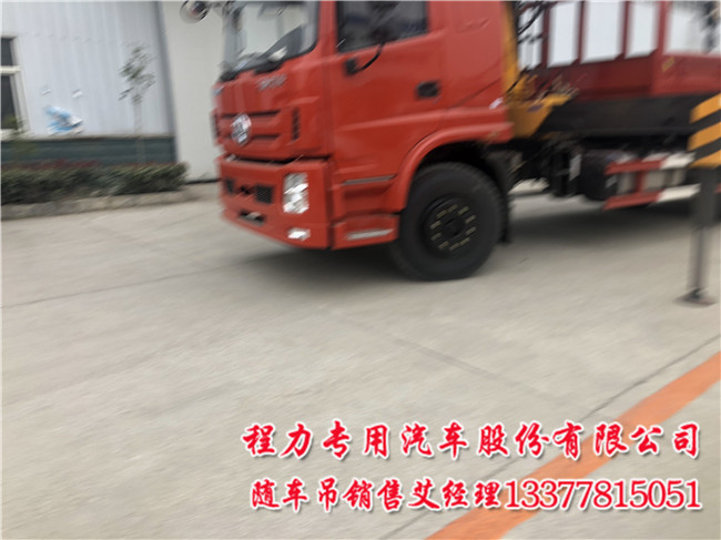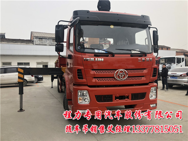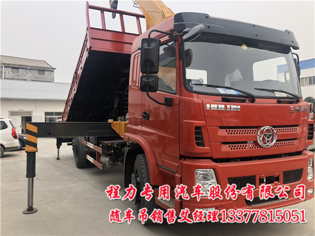STQ三環(huán)十通浮動橋隨車吊配吊:一般配10噸8噸的較多,8噸臂長12.5米,10噸臂長13.5米,但也有用戶配6.3噸12噸吊機,都可保證能上牌,用戶可選上操作,操作,中操三方位四方位。車廂有標配車廂,帶自卸車廂(中置雙頂)。隨車吊價格跟整車配置相關。