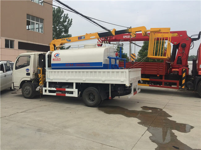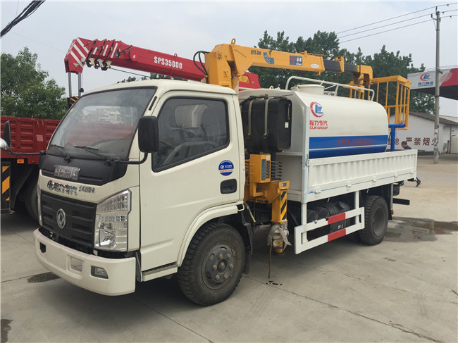 7噸6噸5噸4噸3.2噸藍(lán)牌隨車吊多功能灑水罐_自卸_吊藍(lán),就是用戶購(gòu)車用戶不同,在一輛隨車吊車上完成所需功能,節(jié)約成本——何樂不為。比如上圖中是一輛藍(lán)牌隨車吊,加裝了一個(gè)具有灑水車功能的灑水罐,在4噸三節(jié)大臂頂端加了個(gè)吊藍(lán),有高空作業(yè)車功能.也可加自卸功能車廂更方便.