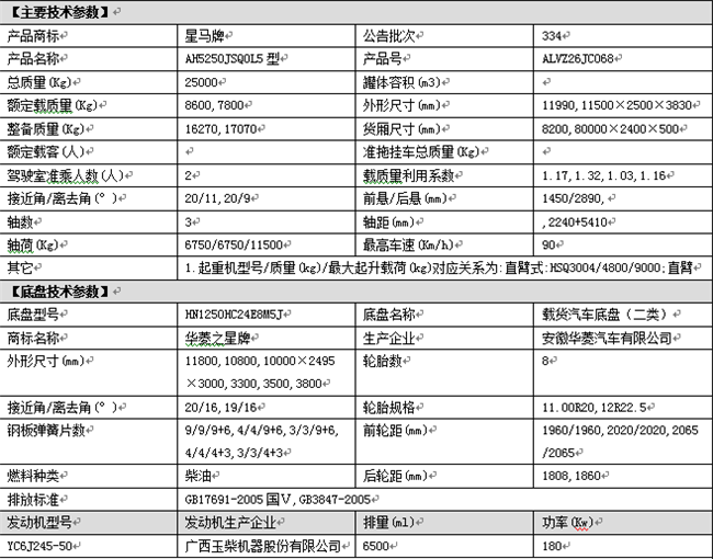 8噸10噸12噸前四后四隨車吊公告參數(shù):為了體現(xiàn)買車更專業(yè),介紹一款產(chǎn)品,要多方面,這一環(huán)節(jié)是從車廂長寬-拉貨能不能裝下,了解外形尺寸是為了一些地方不好拐彎,行車證質(zhì)量是看拉多少貨不超重:星馬牌AH5250JSQ0L5型隨車起重運輸車,額定載質(zhì)量(Kg)8600,整備質(zhì)量(Kg)16270,外形尺寸(mm) 11990×2500×3830,貨廂尺寸(mm)8000×2400×500,軸距(mm)2240+5410。WP7.270E50發(fā)動機。
