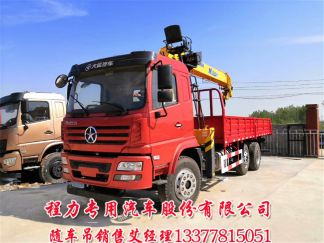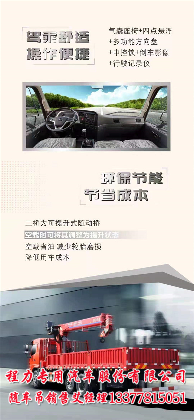 國六8噸10噸12噸大運提升橋隨車吊短軸距大運隨車吊二軸5T隨動橋(可提升)用戶來程力公司看車,底盤吊機有現(xiàn)貨,也可試駕大運隨車吊底盤性能,吊機選程力專汽四節(jié)五節(jié)臂吊機,選12噸吊機不超重,出整備質(zhì)量14375公斤,小選8噸7噸吊機,整箅質(zhì)量出13100公斤,說明車廂要求請講明。