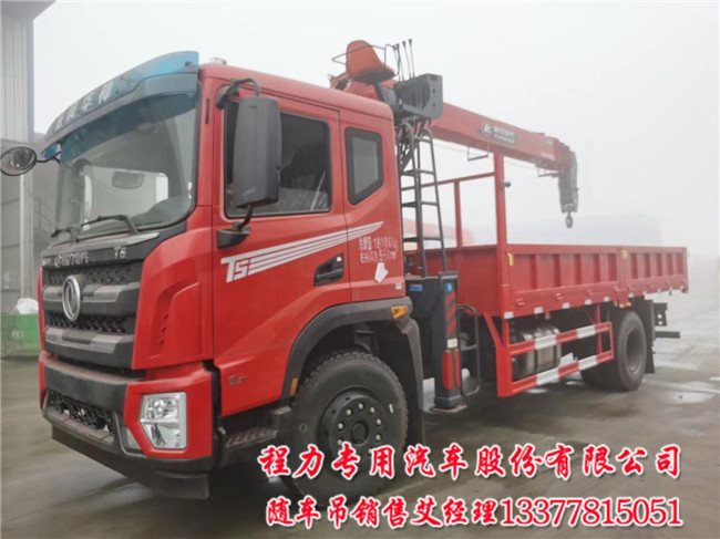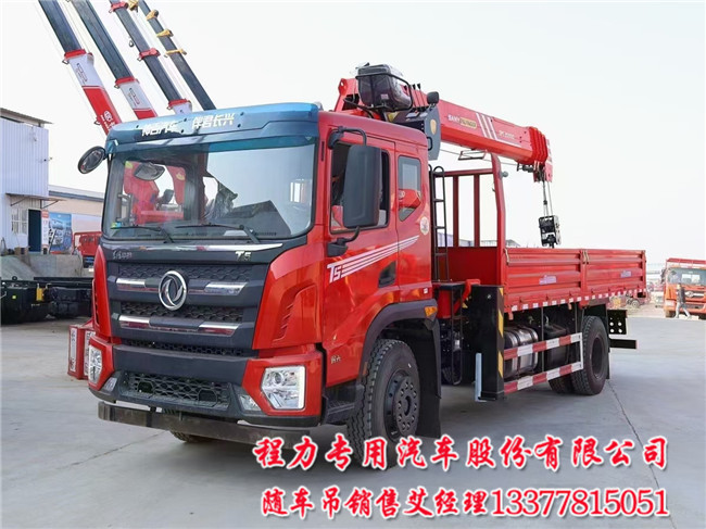 8噸10噸T5國六隨車吊配置:T702至尊版、后橋10噸、10.00R20鋼絲胎。排半車身、玉柴四缸200馬力、法士特小八檔、5100mm軸距、300mm直通三層車架、前橋5噸、中控鎖,電動玻璃,遠程油門,ABS一鍵啟動,氣管干燥劑,行車記錄儀,。自重11580kg,12580kg,車廂5800×2400,2450×550,600,型號東風華神EQ1180GL6DJ,PFT5180JSQGL6D。