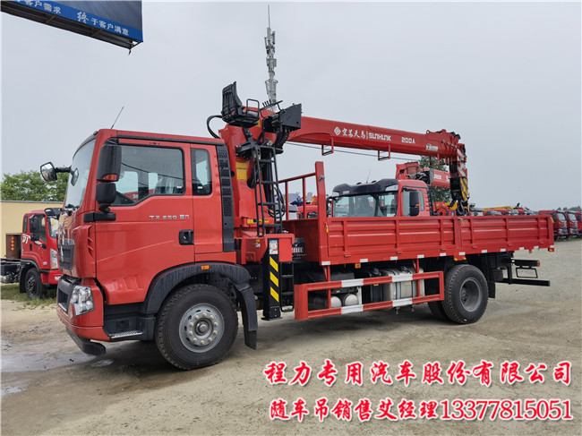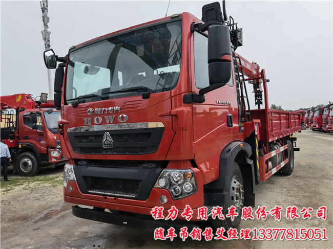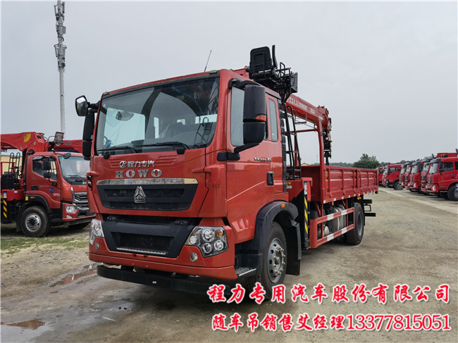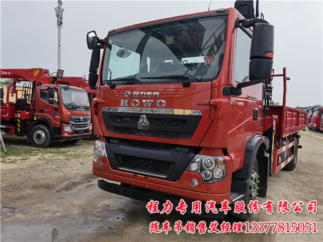 豪沃隨車吊_重汽豪沃隨車吊_8噸豪沃隨車吊配置:豪沃 TX5;專用車;TX-D駕駛室 ;主機(jī)械+副簡易型座椅;MC05H.25-60發(fā)動機(jī);HW95508STC變速箱+HW45ZC法蘭式取力器;MCJ09BG自調(diào)臂單后橋(鼓);速比5.29;局部三層(7+5+8/280);ABS(4S/4M);10.00R20;300L油箱;拉索式PTO;中國重汽智能通D版。