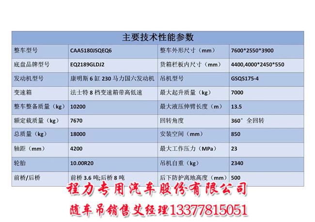 7噸東風(fēng)四驅(qū)隨車(chē)吊/6.3噸四驅(qū)隨車(chē)吊公告出爐了,適合鄉(xiāng)村電桿安裝,山區(qū)苗木遷移,復(fù)雜地形現(xiàn)場(chǎng)救援等。全國(guó)人發(fā)都知道,四驅(qū)或六驅(qū)隨車(chē)吊都辦不了營(yíng)運(yùn)證,國(guó)六四驅(qū)隨車(chē)吊在國(guó)五基礎(chǔ)上把發(fā)動(dòng)機(jī)馬力又加大了,請(qǐng)看配置:康明斯6缸230馬力發(fā)動(dòng)機(jī),10.00鋼絲胎。7噸直臂吊機(jī),臂長(zhǎng)12米,輕量化設(shè)計(jì)。國(guó)六排放標(biāo)準(zhǔn),4200軸距,法士特8檔變速箱,東風(fēng)原裝前5后10車(chē)橋,軍用分動(dòng)箱。