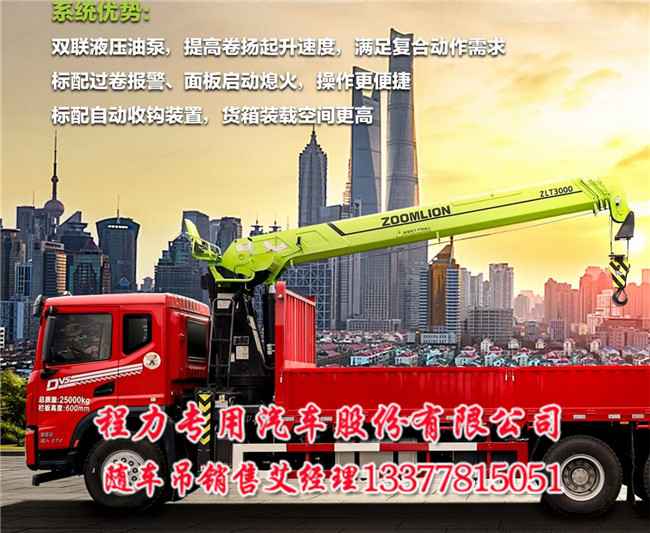 新啟航中聯(lián)重科ZLT300OV4創(chuàng)極致12t吊臂:六邊形大截面高強(qiáng)鋼主體結(jié)構(gòu)加強(qiáng)型單缸雙繩同步伸縮機(jī)構(gòu)4節(jié)全伸15.88米極致臂長(zhǎng)支腿:6米跨距,更穩(wěn)起重全伸最大17.5米作業(yè)高度吊載4.1噸綜合起重性能領(lǐng)先競(jìng)品10%以上系統(tǒng)優(yōu)勢(shì)雙聯(lián)液壓油泵,提高卷?yè)P(yáng)起升速度,話(huà)標(biāo)配過(guò)卷報(bào)警、面板啟動(dòng)熄火,操作更便捷標(biāo)配自動(dòng)收鉤裝置,貨箱裝載空間更高