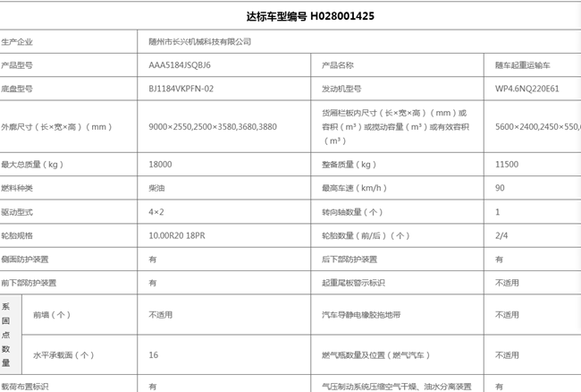 福田瑞沃隨車吊的燃油公告:達標車型編號 H028001425,產(chǎn)品型號AAA5184JSQBJ6,底盤型號BJ1184VKPFN-02,發(fā)動機型號WP4.6NQ220E61,外廓尺寸(長×寬×高)(mm)9000×2500×3680,貨廂欄板內(nèi)尺寸(長×寬×高)(mm)或容積(m3)或攪動容量(m3)或有效容積(m3)5600×2400,×550,最大總質(zhì)量(kg)18000,整備質(zhì)量(kg)11500,燃料種類柴油,最高車速(km/h)90,驅動型式4×2。網(wǎng)安備案號:11019639009-18044 ,總訪問量: 當前在線。