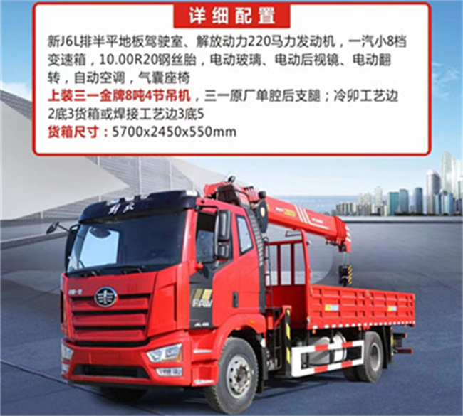 徐工三一8噸解放隨車吊程力專汽新J6L排半駕駛室解放隨車吊