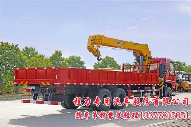 D3V后雙橋12噸隨車吊配置:國六東風D3V后雙橋12噸隨車吊,底盤配置: 國六玉柴270馬力,法士特九擋變速箱帶同步器,5噸前橋10噸后橋,原廠空調,300mm直通三層大梁,11.00R20鋼絲胎,電動門窗,中控鑰匙,氣囊座椅。