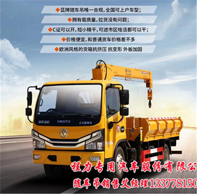 東風多利卡D6藍牌隨車吊上裝長興4噸3節(jié)直臂吊機,舉升高度9.5米,工作半徑7.5米。上裝長興4噸4節(jié)直臂吊機,舉升高度12米,工作半徑10米。這款車子出廠都是整車,一切手續(xù)按公告手產(chǎn),
