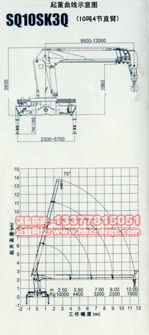 SQ10SK3Q10噸直臂吊機(jī)能數(shù):2.5米吊10噸, 4.5米吊5.5噸, 7米吊3.2噸, 9米吊2.3噸 12米吊1.5噸, ,