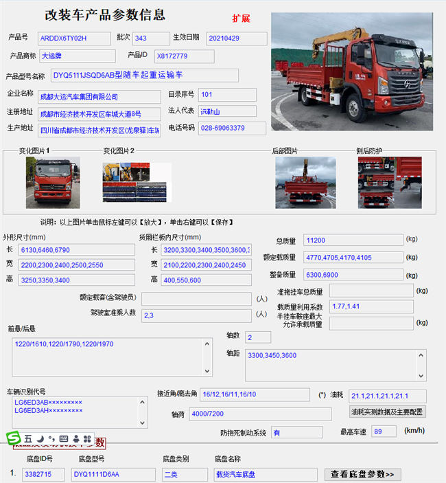 3.6米短軸距大運(yùn)隨車(chē)吊公告查詢